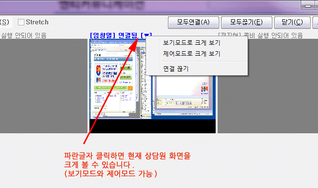 ¶ÇÇÑ »ó´ã¿ø ȸé°ú ¿¬°áµÇ¸é ¾Æ·¡ ±×¸²°ú °°ÀÌ ÆÄ¶þ°Ô Ȱ¼ºÈµÇ¸ç Ŭ¸¯ÇÏ¸é ¾Æ·¡¿Í °°Àº ¸Þ´º°¡ Ç¥½ÃµÇ¾î º¸±â¸ðµå ¶Ç´Â Á¦¾î¸ðµå·Î ÇØ´ç »ó´ã¿øÀÇ È¸é¸¸ Å©°Ô º¼ ¼ö ÀÖ½À´Ï´Ù.